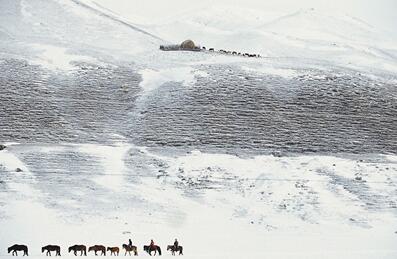 ▲王琛攝于2006年2月,新疆天山貢乃斯冬季天山牧場(chǎng)。