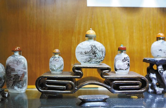 據楊藝介紹,明末清初,鼻煙作為貢品開始傳入我國,這些進貢的鼻煙用玻璃瓶盛裝,以防止其味道散失,并以瓶的大小標示鼻煙計量。王士禎在《晉祖筆記》中記載:“鼻煙以玻璃為瓶貯之。瓶之形象種種不一,顏色具紅黃紫白黑綠諸色,白如水晶,紅如火齊,極可愛玩,以象齒為匙,就象鼻之,遠納于瓶。”它的突出貢獻就在于,把紙上畫和寫的藝術,經過工具、操作等多方面的革新,改在為玻璃或水晶煙壺內壁反面上作畫,其難、其奇,真可謂巧奪天工。內畫煙壺的創作在光緒年間達到鼎盛。收藏界認為它集中國工藝美術之大成的袖珍藝術,是詩書畫并茂的藝術精品。