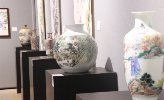 展出廣彩大師劉群興之子劉致遠國畫作品20幅及陶瓷精品60件。展期將持續到1月15日。