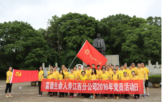 為紀念中國共產黨建黨95周年,深入開展“兩學一做”學習教育活動,6月30日,在富德生命人壽江西分公司黨委書記總經理桂衍勝的帶領下,分公司及南昌中支全體黨員、預備黨員及入黨積極分子30余人前往南昌市方志敏烈士陵園開展以“緬懷革命先烈、重溫入黨誓詞”為主題的革命傳統教育。