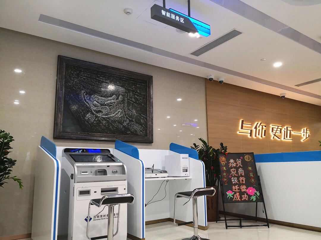 現金區域設置了磨砂自動感應玻璃門,滿足了客戶私密性的要求,讓客戶在辦理業務時更加放心、更加舒心。非現金區域的低柜和智能服務區,為客戶自助辦理業務提供了便利。不同業務需求的客戶可到相應的智能設備上辦理業務,四臺多功能智能柜臺更讓客戶體驗無需排隊,無需填單,快速自主的辦理開戶、轉賬、定期理財、個人信息修改等業務。