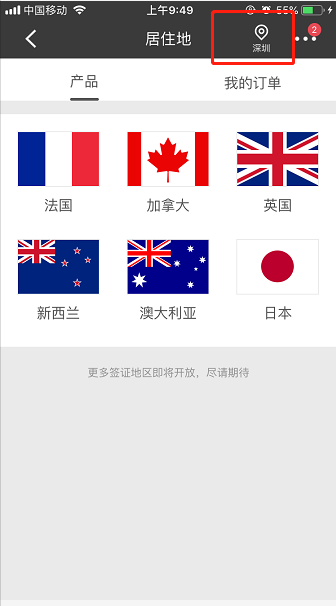 目前,深圳地區用戶可以辦理法國、加拿大、英國、新西蘭、澳大利亞、日本六個國家的簽證,后續將有更多簽證地區開放。