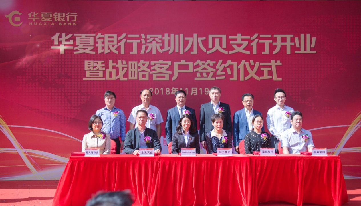 深圳新聞網訊 2018年11月19日上午,華夏銀行深圳水貝支行舉行開業暨戰略客戶簽約儀式,華夏銀行深圳分行黨委書記、行長陳傳龍為支行開業揭牌,深圳市羅湖區政府、周邊街道辦等相關部門負責同志,以及部分華夏銀行戰略客戶代表出席了儀式。華夏銀行深圳分行黨委班子、各管理部室負責人、鄰近片區支行行長共同見證華夏銀行深圳水貝支行正式揭牌開業。