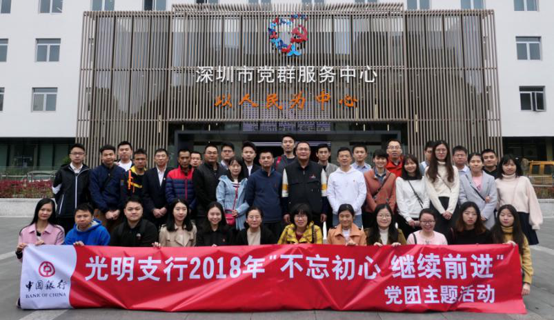 為進一步豐富黨團組織文化,增強黨員、團員干事拼搏、創先爭優的意識,提升團隊凝聚力和向心力,12月8日,中國銀行深圳光明支行前往深圳市黨群服務中心開展“不忘初心繼續前進”黨團主題活動,該行轄內中共黨員、預備黨員、發展對象、積極分子及共青團員共計50余人參加。
