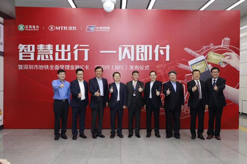 目前深圳市地鐵已全面受理金融IC卡,市民可使用招行金融IC卡揮卡乘車。深圳市民及外地游客只要使用Apple Pay等招行手機閃付,或使用招行金融IC卡閃付(包括部分信用卡及借記卡),即可“一揮即付”,便捷搭乘地鐵。現階段深圳市地鐵全線網每個車站已經設置至少“兩進兩出”四臺閘機供乘客使用招行金融IC卡乘車,部分客流量較大的車站則設置了至少10臺閘機,乘客可尋找站內紅色閘機使用招行金融IC卡乘車。年內,深圳市地鐵全線網車站的所有閘機將全部支持招行金融IC卡過閘服務。