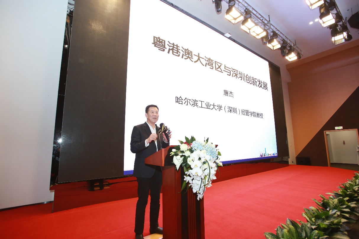 在嘉賓演講環(huán)節(jié),深圳市原副市長、哈工大深圳經(jīng)管學(xué)院教授唐杰向與會(huì)嘉賓作了題為《粵港澳大灣區(qū)背景下的深圳發(fā)展新機(jī)遇》的精彩報(bào)告。唐教授回顧了深圳四十年的發(fā)展進(jìn)程,表示深圳是個(gè)由無限個(gè)傳奇故事編織起來的年輕城市,新的機(jī)遇帶來新的產(chǎn)業(yè)震蕩,正成長為我國重要的經(jīng)濟(jì)、貿(mào)易、金融中心和創(chuàng)新發(fā)展的代表。