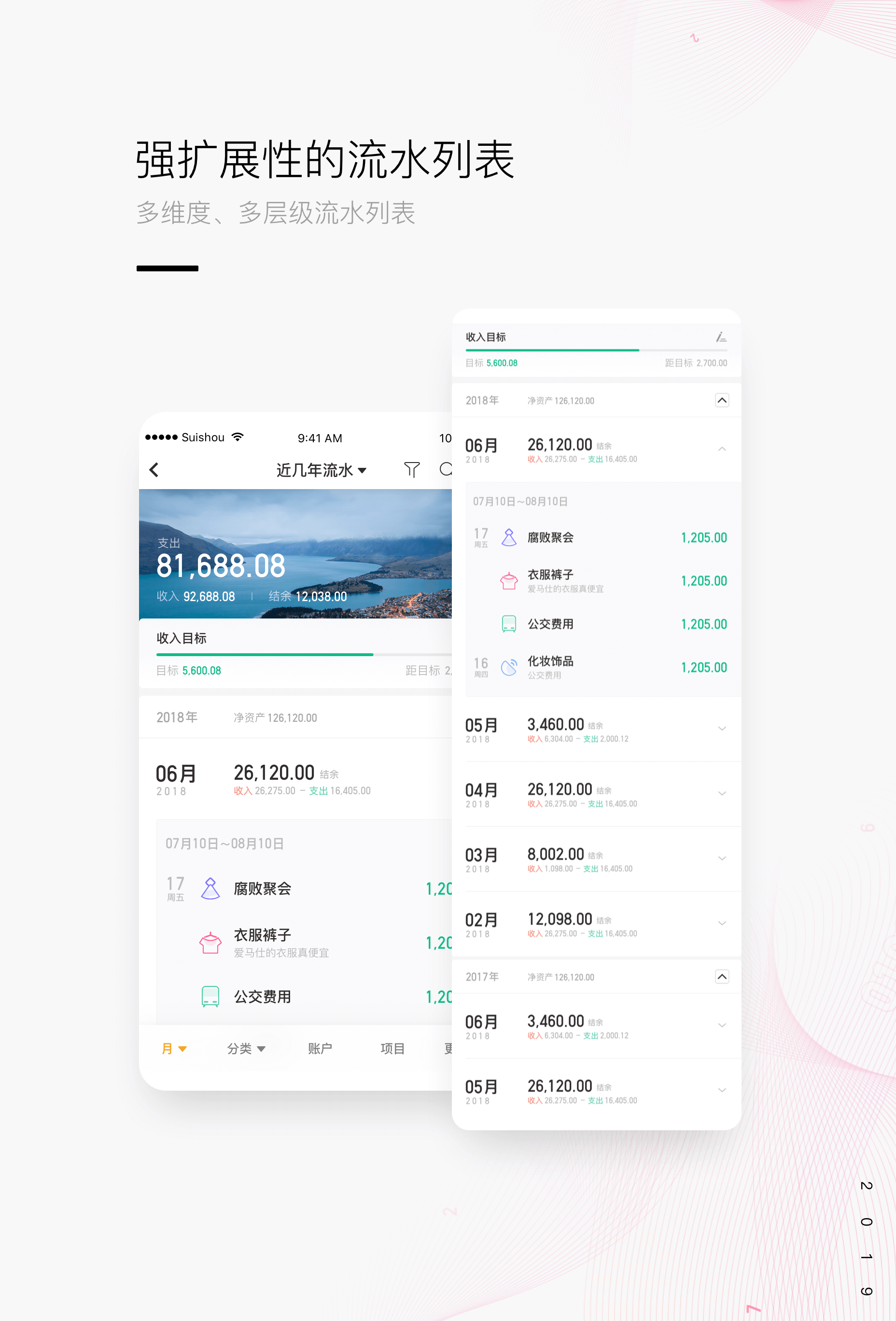 隨手記 V12基于“工具屬性、專業感知、平衡繁簡”三大維度進行拓展和升級,強化應用本身的核心特色并滿足用戶的迫切需求,更便捷的操作、更直觀的信息結構,給用戶營造更沉浸的記賬體驗。