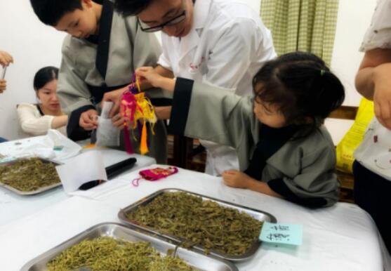 醫生還向“小中醫”們介紹了中醫理療知識,醫生將人體的經絡比喻成公交路線,將點按穴位所產生的身體感應點比喻成公交車,用形象生動的方式給小中醫們講解了人體的經絡構成和中醫推拿、刮痧等的科學原理。最后,小中醫們還在指導下根據傳統的中草藥配方及功效制作了驅蚊香囊。這種別出心裁的“動手式”課程讓“小中醫”們進一步加深了對中醫的理解和體驗。