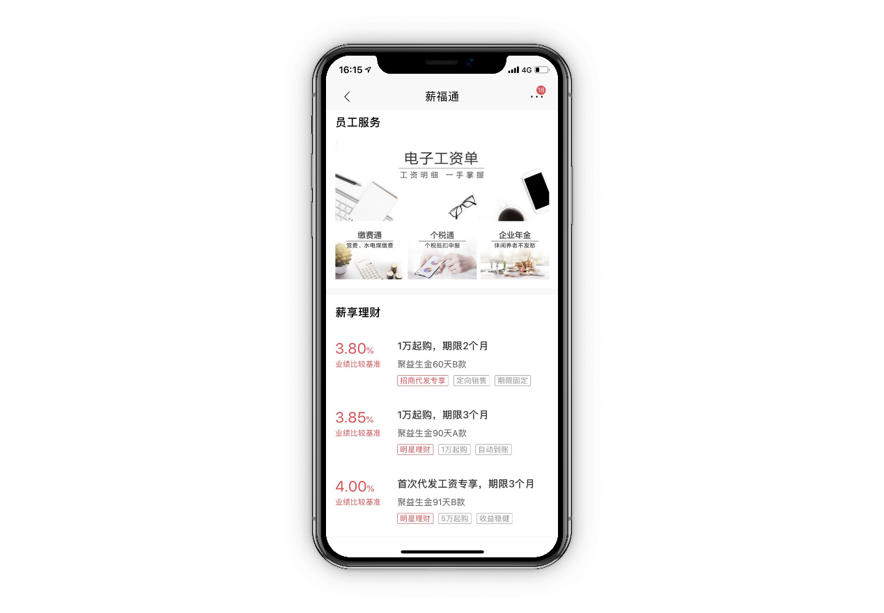 再比如為幫助企業員工實現薪酬增值,招行推出了工資卡客戶專享的理財、存款、閃電貸等一體化的投融資服務。同時,只要登錄招商銀行App薪福通專區,即可獲得專屬積分和優惠票券,為員工美好生活添磚加瓦。