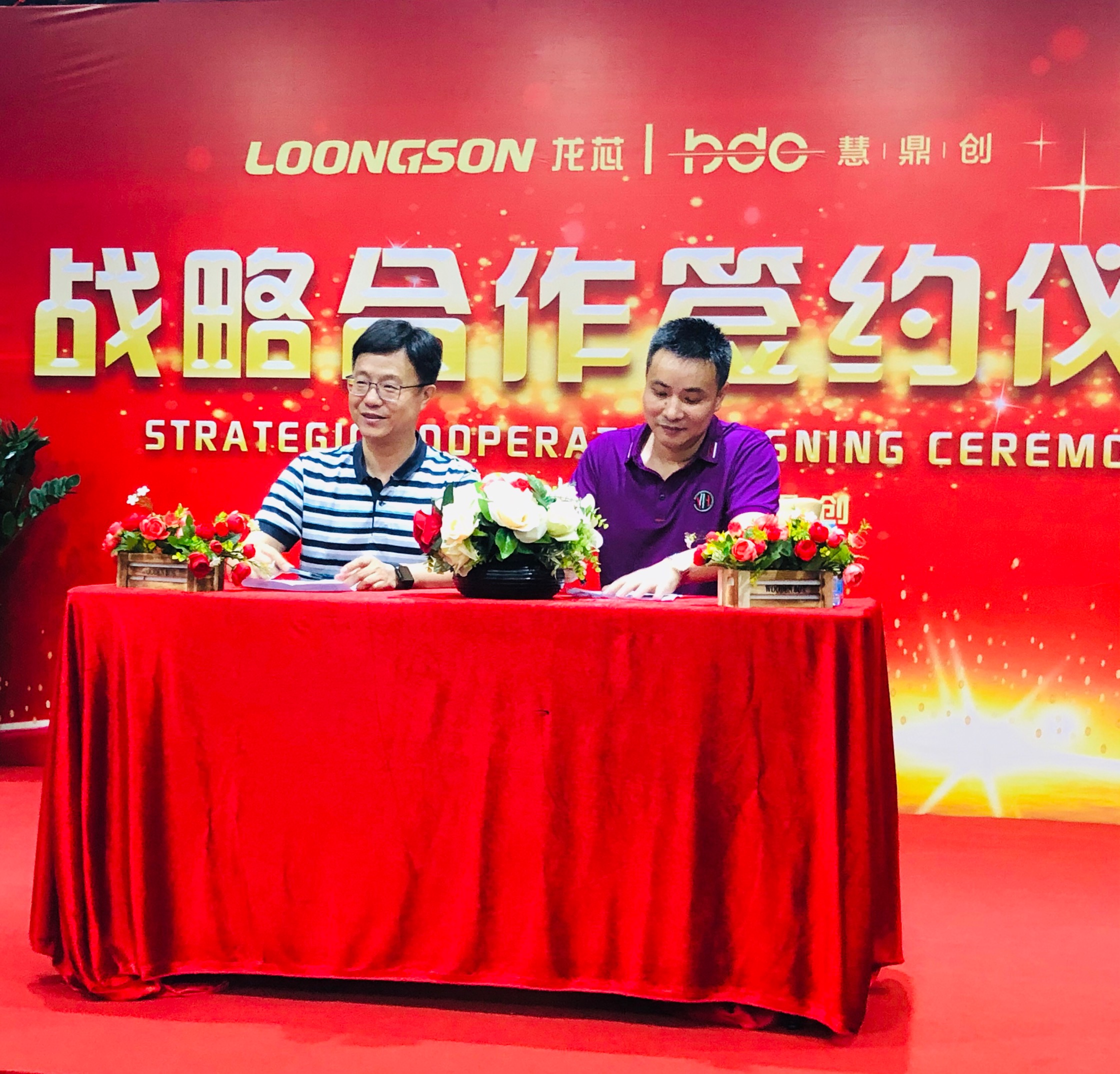 在本次儀式上,廣東龍芯總經理江山和深圳慧鼎創總經理吳力城,現場簽訂了戰略合作協議。