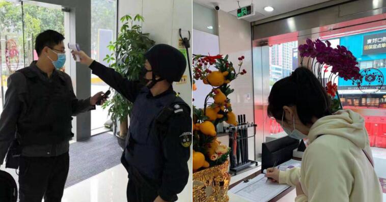 疫情發(fā)生后,寧波銀行深圳分行第一時(shí)間為網(wǎng)點(diǎn)員工準(zhǔn)備了體溫計(jì)、洗手液、酒精、手套、口罩和護(hù)目鏡等防疫物資,督促員工測(cè)體溫、勤洗手、戴口罩,做好安全防護(hù)工作。網(wǎng)點(diǎn)做好到行客戶(hù)體溫檢測(cè)和基本情況登記工作,引導(dǎo)客戶(hù)減少聚集,快速辦理業(yè)務(wù)。