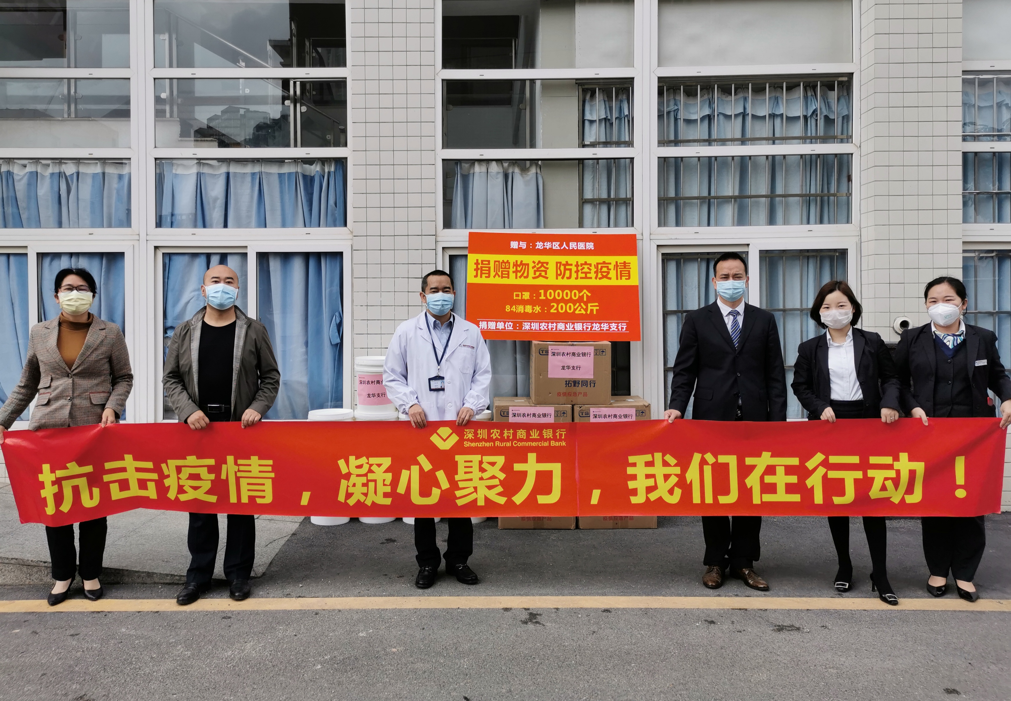 根據龍華區疫情防控形勢,深圳農商行龍華支行陸續向龍華區人民醫院,以及區內龍華、民治、大浪等三個街道及街道轄下的社區股份合作公司捐贈口罩、紅外線測溫儀、防護面罩、84消毒水等防疫物資,全力支持龍華區疫情防控工作。
