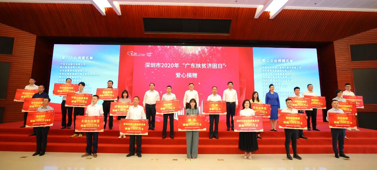 見圳客戶端·深圳新聞網2020年7月2日訊 近日,深圳市舉辦了2020年“廣東扶貧濟困日”活動。該活動以“決戰脫貧攻堅,助力鄉村振興”為主題,旨在鼓勵社會各界深入貧困地區,為脫貧攻堅共同出力。活動當天,深圳農村商業銀行(以下簡稱“深圳農商行”)與萬科、恒大、平安集團、鑫榮懋集團等多家愛心企業一同參與了現場舉牌認捐,連續三年累計認捐300萬元,積極踐行慈心善行。
