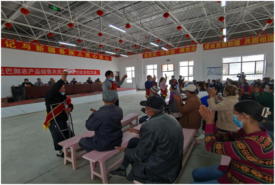 但好名字只是開始,作為合作社,得有領頭人,成員怎么選、選誰,入股資金等事宜都需一一落實,就在萬事俱備,只欠東風之際,合作社在莎車縣市場監督管理局注冊登記后,需要合作社成員簽字確認之時,合作社的一名成員阿布都喀迪爾·艾麥爾突然不愿意加入合作社了,原因則在于其對網絡銷售心存疑慮。為此,烏魯木齊分行扶貧干部驅車奔波百余公里,輾轉七個鄉村,硬是在距縣城50公里遠的依蓋其鎮農貿牛羊市場找到了他,耐心地與他溝通交流,之后他明白了光大銀行通過消費扶貧的方式對貧困村扶真貧、真扶貧的良苦用意,對能首批參與合作社堅定了信心,隨即一同來到縣市場監督管理局簽署了確認加入合作社的意見。