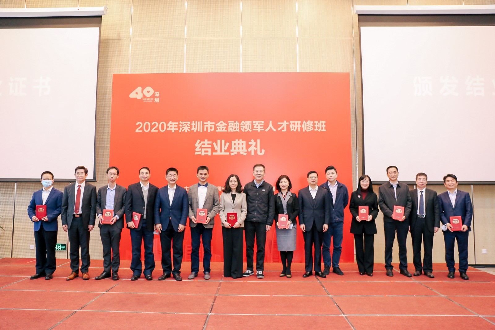 平生書記在致辭中表示,2020年是極不平凡的一年,是金融機構積極主動作為、彰顯責任擔當的一年,也是深圳金融業逆勢而上,保持平穩健康發展的一年,金融機構對全市統籌疫情防控和經濟社會發展作出了重要貢獻,金融業在全市經濟增長實現V形反轉、率先翻正中發揮了“壓艙石”作用,這些成績來自每一位金融人才的拼搏奮斗,領軍人才為行業發展做出了積極的貢獻。研修班期間,學員們一起聆聽名家大咖講課、踴躍參加主題論壇、認真撰寫調研報告,還開展了閉門研討、名企考察、交流互訪等形式多樣的活動,既豐富了知識、開闊了眼界,也促進了交流、收獲了友誼,總體達到了預期效果,為全面實施“深圳百千萬金融人才培養工程”奠定了扎實基礎。他希望學員學思悟踐、學以致用,緊抓粵港澳大灣區、先行示范區“雙區驅動”和綜合改革試點的重大歷史機遇,聚焦制約行業發展重點難點問題,深入研究、謀篇破題,為深圳金融業高質量發展做出更大貢獻。