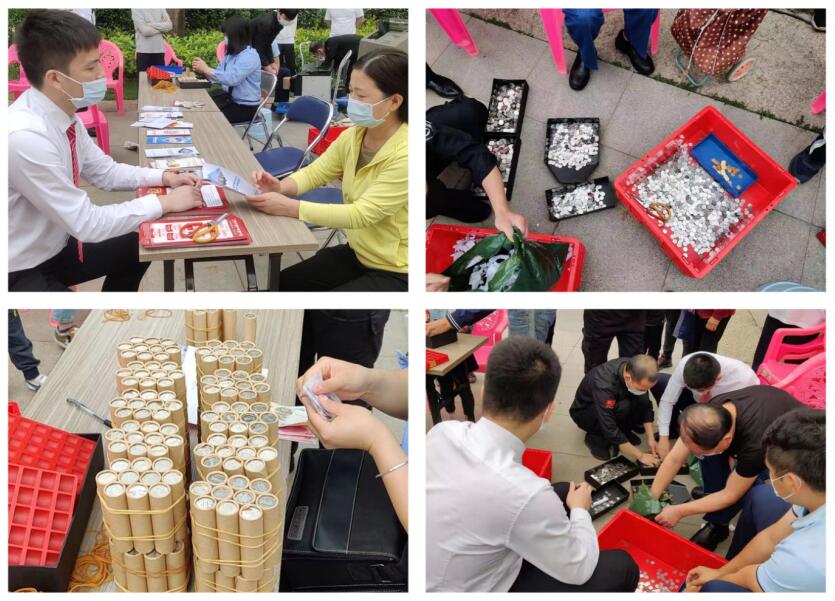 3至4月期間,深圳分行走進水榭花都和華海瀾灣小區,開展“硬幣兌換進社區”公益活動,并向社區居民宣傳“3.15金融消費者權益”、人民幣圖樣使用等金融知識。從2017年開始,深圳分行累計開展“硬幣兌換進社區”活動近50次,回收硬幣超過100萬枚,徹底解決居民硬幣積壓的老大難問題,是“一切人民為中心”、“急人民之所急,想人民之所想”的集中體現。