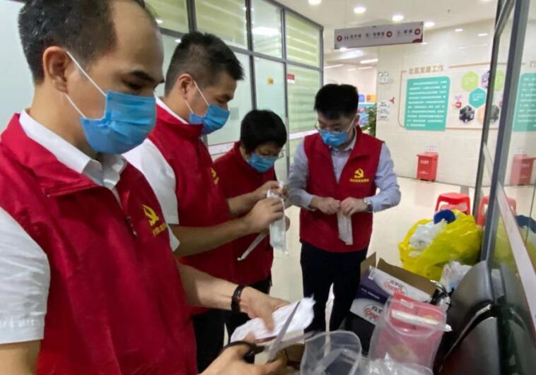 6月初,在了解到轄內核酸檢測點面臨醫護人員、志愿者人手緊張的情況后,深圳農商行龍城支行積極響應號召,在支行行長帶領下,組織青年員工參與吉祥社區防疫工作。各青年員工積極參與現場秩序維護與物資搬運,更有兩名青年黨員同志穿上防護服,發揮黨員帶頭作用,在做好自身防護的情況下,在現場協助醫生進行核酸檢測。