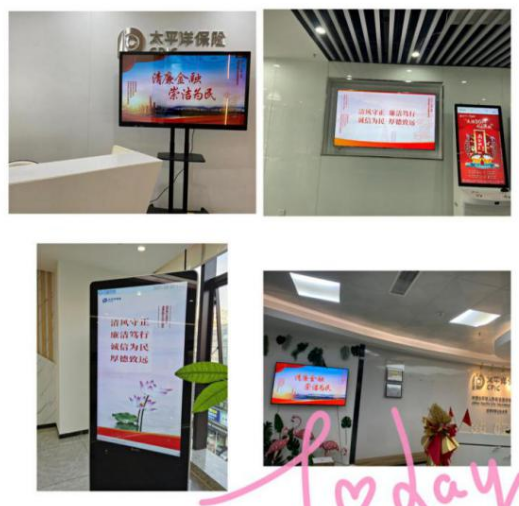 播放清廉金融文化海報,營造職場范圍