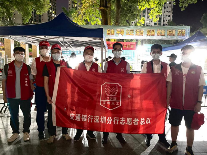 深圳交行還積極響應深圳團市委、深圳市義工聯合會號召,向青年員工發出志愿服務倡議,組織廣大青年團員積極參與到核酸檢測志愿者隊伍中,筑牢疫情防控青春戰線。該行團委、福田支行團支部、光明支行團支部和羅湖支行團支部等多家單位志愿者深入社區,在多處核酸檢測采樣區域,都能夠看到身穿紅馬甲的交行青年志愿者。