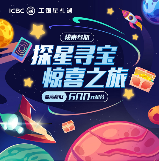 即日起至9月30日,工行用戶只需關(guān)注“中國工商銀行客戶服務”微信公眾號,輸入“探星尋寶”了解活動詳情,達標客戶將有機會贏取最高價值600元積分獎勵。該活動以“月”為周期,活動期內(nèi)任意月份客戶提升“達標星級”,次月都會得到積分獎勵!積分可在工銀e生活、融e行、融e購平臺兌換豐富商品,更有微信立減金、支付寶紅包可兌換。