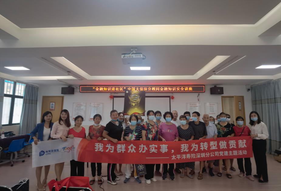 9月17日上午,中國太保壽險深圳分公司黨委組織部與業務條線的黨員、職工及營銷一線人員走進華富街道田面社區,面向社區的老年群體,開展了“金融知識進社區”金融知識講座。本次活動以普及金融知識、宣講紅色金融史為主題,一是聚焦容易受到詐騙的老年群體,突出理性投資等宣傳教育重點,積極開展金融宣傳教育,加強知識普及和風險提示,防范金融詐騙活動;二是堅持黨建引領,緊密結合在黨和群眾中開展黨史學習教育工作的有關部署,大力宣傳紅色金融史,積極與群眾面對面、做基層宣講員,持續推動黨史學習教育走深走實。