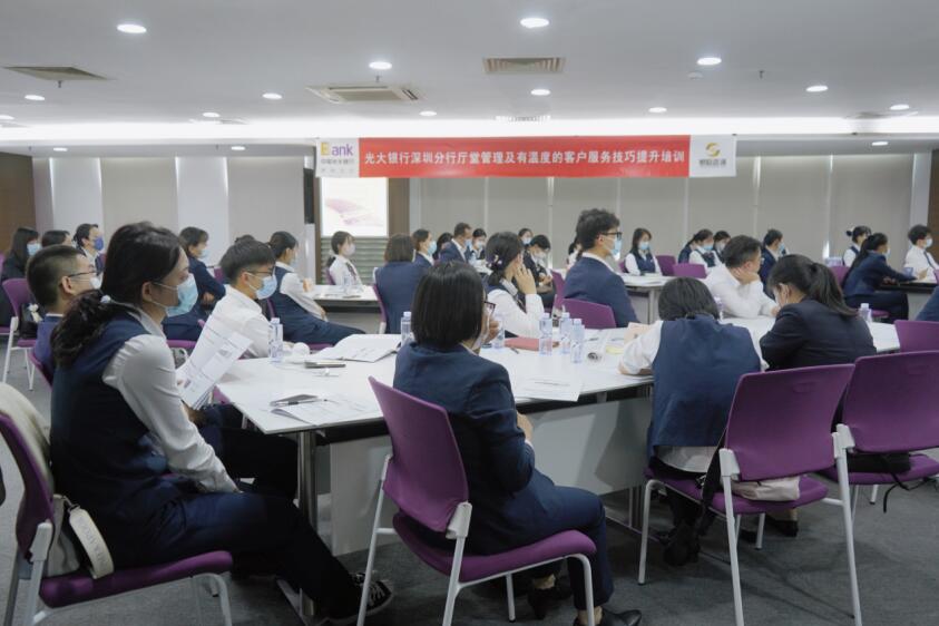 深圳新聞網(wǎng)2021年11月13日訊(記者 朱琳 通訊員 沈婷)為落實(shí)新形勢(shì)下的服務(wù)工作要求,推進(jìn)更優(yōu)客戶體驗(yàn)的服務(wù)規(guī)范,履行社會(huì)責(zé)任,樹(shù)立光大品牌。11月12日,光大銀行深圳分行舉辦了“廳堂管理及有溫度的客戶服務(wù)技巧提升”第三期專題培訓(xùn)。深圳分行總監(jiān)、陽(yáng)光服務(wù)(消費(fèi)者權(quán)益保護(hù))辦公室負(fù)責(zé)人以及各支行大堂經(jīng)理、大堂助理共50余人參加了培訓(xùn)。