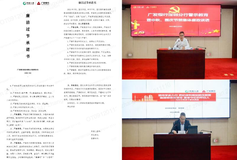 廣發銀行深圳分行開展中秋、國慶節前集體廉政談話暨警示教育