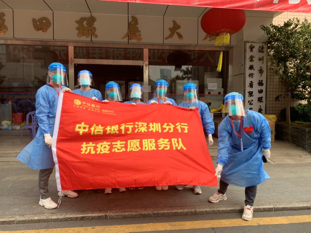 3月17日凌晨,在福田區金融局招募志愿者通知發出后,中信銀行深圳分行迅速向全轄發出倡議,在短短時間內便有將近30名志愿者報名。經過任務條件篩選,該行組建了首批由8名黨員和1名團員組成的抗疫志愿服務隊。