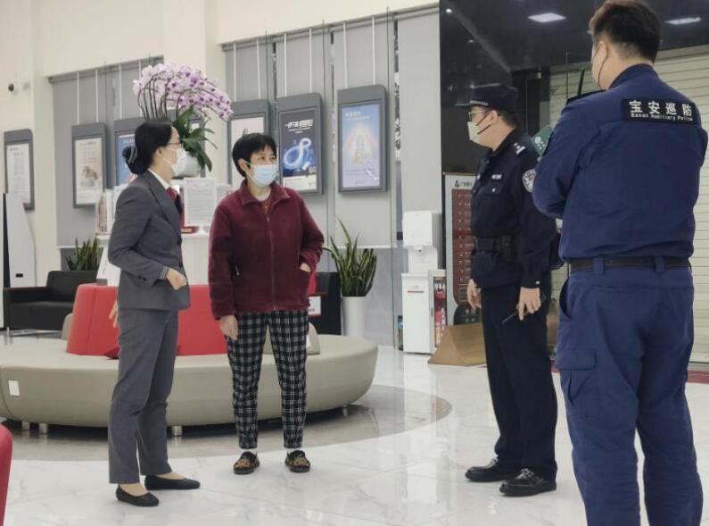 事發當天17時左右,一位老年客戶氣喘吁吁地走進寶安支行,神色慌張,支行員工田笑竹見狀立刻接待,并主動安撫客戶情緒。通過詢問發現,客戶被盜用了個人信息,銀行賬戶可能存在風險。