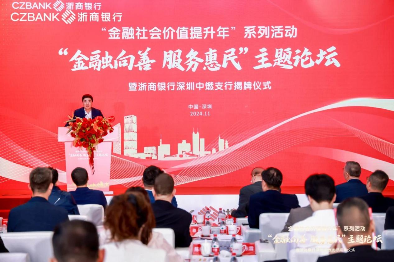 深圳新聞網2024年11月6日訊(記者 朱琳 通訊員 劉璇)為深入貫徹黨的二十屆三中全會和中央金融工作會議精神,11月4日,“金融向善 服務惠民”主題論壇暨浙商銀行深圳中燃支行揭牌儀式在中國燃氣大廈舉行。本次活動也是浙商銀行“金融社會價值提升年”系列活動之一。國務院發展研究中心原黨組成員、副主任余斌,中國上市公司協會會長宋志平,浙商銀行黨委書記、董事長陸建強,中國燃氣控股有限公司董事局主席劉明輝等嘉賓出席活動。