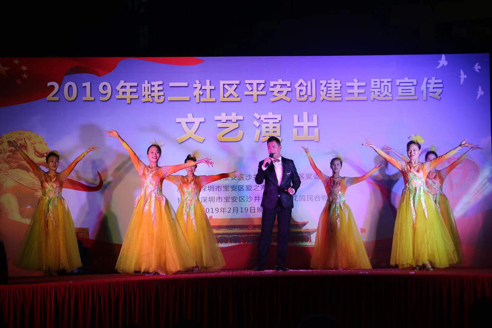 深圳新聞網(wǎng)2019年2月20日訊 (記者/周錦春 通訊員/孫善文)2月19日是元宵節(jié),當晚,由寶安區(qū)沙井街道蠔二社區(qū)黨委主辦,寶安區(qū)愛之聲藝術(shù)團承辦的“平安創(chuàng)建宣傳”文藝演出活動在學(xué)府花園舉行。本次活動包括了戲曲、歌曲、舞蹈、小品、魔術(shù)等多種形式,豐富多樣,生動有趣,為近500名社區(qū)居民提供了一場精神盛宴。