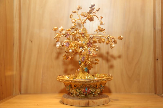 花絲鑲嵌最早可追溯至春秋戰國時的金銀錯,至唐代的金銀平脫,明清時是花絲鑲嵌的發展的巔峰期,并成為皇家定制的頂級奢侈品,是真正屬于我們中國人的“奢侈工藝”。它的技法精湛,美輪美奐,是雋永流傳的文化瑰寶。