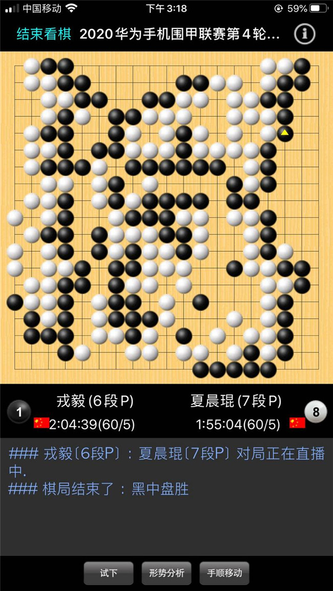 韓國外援、申旻俊主將本輪執白對陣丁浩。開局黑稍好,黑151少交換一個次序,被白抓住機會拉近局勢。此后,黑163又嚴重失誤,形成轉換后白棋奠定勝勢。申旻俊在兩連敗后取得兩連勝。