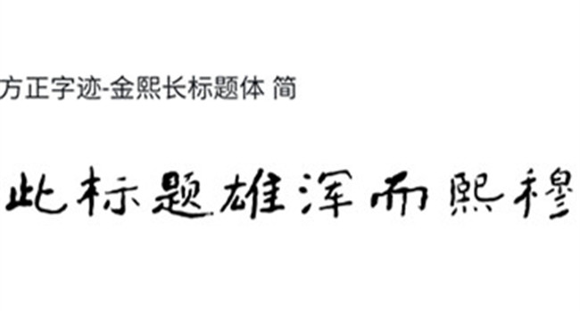 金熙長先生創作的《方正字跡-金熙長標題體》,以嚴謹的學術態度,經過近四十年來一直不斷的歷代名碑名帖的錘煉化虛,終將難字拆開成“又佳”,形成自已目前“雄渾靜穆與高古野逸為一爐的居士書風面貌”。面對《方正字跡-金熙長標題體》,讀者只要將目光稍作停留,就不難發現該字體有以下特色——