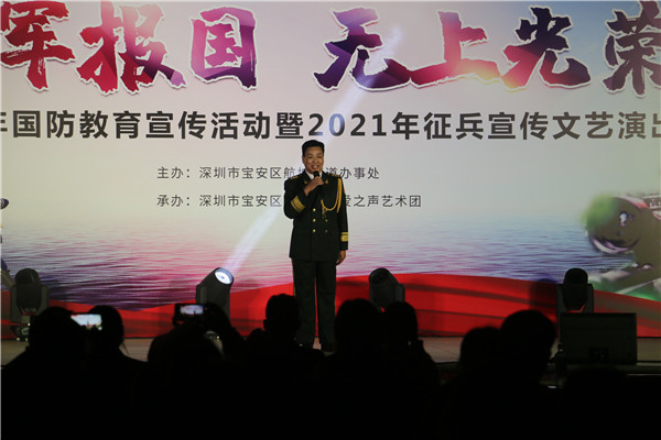 見圳客戶端?深圳新聞網2020年12月2日訊 為增強轄區居民的國防意識,做好今年冬季征兵工作,12月1日,深圳市寶安區航城街道辦“參軍報國 無上光榮”為主題的國防教育宣傳活動暨2021年征兵宣傳文藝演出在航城街道辦成功舉辦。此次活動由深圳市寶安區航城街道辦主辦,寶安區西鄉街道辦愛之聲藝術團承辦。