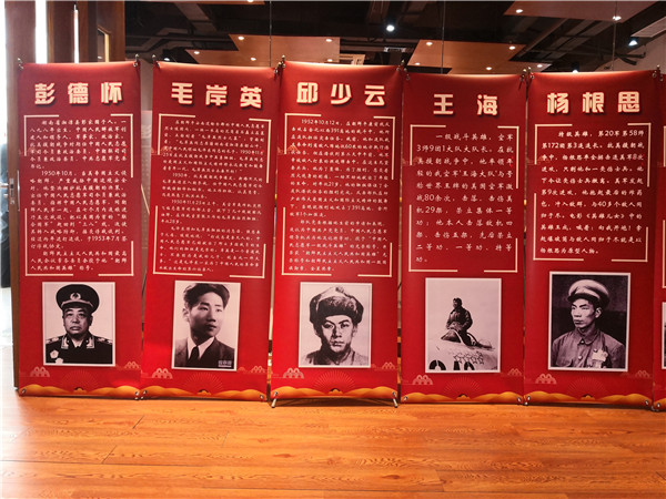 《抗美援朝十大英雄和著名戰役宣傳展》主要以展板形式陳列在活動現場四周,以便于到場的人學習參觀。據悉,在抗美援朝戰爭中,中國人民志愿軍榮立三等功以上指戰員有302724名,被授予英雄、模范稱號和特等功人員502名,其中:特級英雄兩名,一級英雄50名,一級模范4名,二級英雄286名,二級模范75名,特等功85名。本次宣傳展收集了十位最有影響的英雄,他們是:彭德懷、楊根思、黃繼光、解秀梅、孫占元、邱少云、楊育才、張桃芳、王海、羅盛教。著名戰役有:上甘嶺戰役、馬良山爭奪戰、橫城反擊戰、云山之戰……參觀之后,許多人為英雄人物的言行所感動,表示要傳承發揚抗美援朝不畏強權的英雄主義和革命精神。
