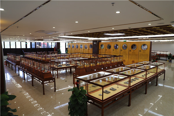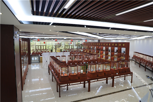 值得重點介紹的是,在珍品陳列區,有不少原全國人大常委會副委員長李鐵映同志親自創作的工藝美術品。一是“鐵映十八式紫砂”,是李鐵映先生自身藝術文化修養的結晶。他以青銅、古玉等重器國寶為模,以詩詞、文論為識,以宜興獨有的紫砂材質和豐富的工藝手段,吸取中國各種傳統工藝的特點,創意了具有民族特色的簡潔古雅的紫砂新藝術,精妙構思,博觀約取,歷數年制成。2010年元月,李鐵映先生將“鐵映十八式紫砂” 捐贈一套給國家博物館。二是限量仿制清宮琺瑯彩瓷。琺瑯彩瓷創燒于康熙,興盛于雍正、乾隆兩朝,之后便沉潛史海,難覓芳蹤。李鐵映先生得知后,高度重視,數度深入相關博物館和景德鎮院校、企業調研,組織成立“紫玄琺瑯瓷研究室”,確立了“發掘保護、繼承發展”的指導思想,提出“仿古不泥古,仿清更超清”仿制要求,經過成百上千次的反復試驗,最終成品,既具有清代康雍乾琺瑯彩瓷的藝術品味和精神風貌,但在材質、工藝、技術等方面有所超越,可以說,每件作品都能集工藝價值、文化價值、歷史價值、藝術價值于一身。