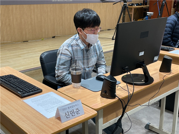 二臺主將申旻俊執白對陣楊鼎新。右邊戰斗黑棋有所失誤,白棋局面大好。后來黑棋頑強追趕,最終還是白棋以最小優勢1/4子獲勝。