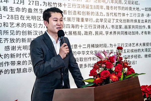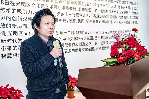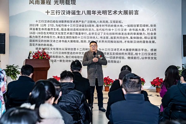 讀特客戶端·深圳新聞網2021年12月29日訊(記者 田志強)近日,國家社科基金項目“當代漢詩創新詩體研究”階段性成果展——十三行漢詩書畫作品展,于光明區文化館成功舉辦。本次展覽集中展示本項目重要研究成果、全國各地新漢詩詩人的原創十三行漢詩之書畫作品等。十三行漢詩創立八年以來,得到了海內外詩人的廣泛關注,在國家社科基金研究團隊精研闡釋的基礎上,得到了學術界的肯定。