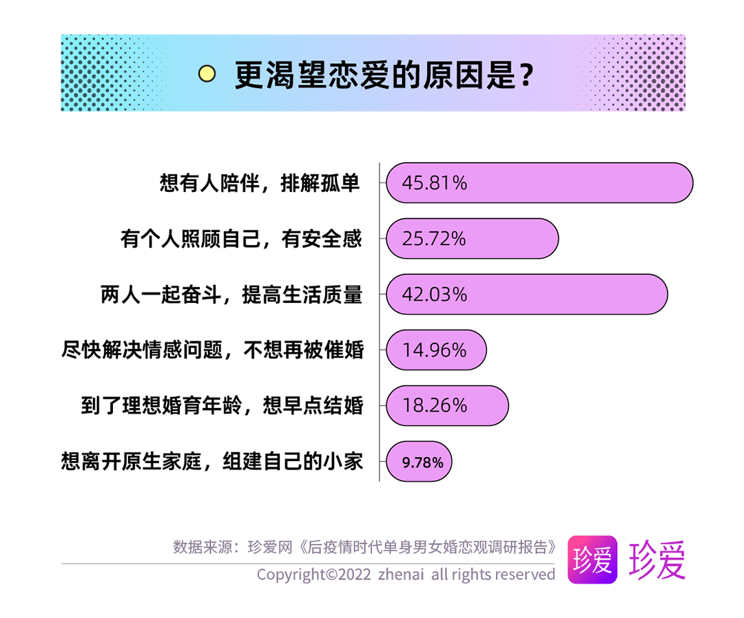 當下,人們的社交需求日益多元化,這對專業婚戀服務提出了更高的要求。珍愛網將持續關注單身人群的交友偏好和婚戀觀念,升級產品,提升服務,幫助不同年齡、不同性格、觀點各異的單身人群找到適合的另一半,早日收獲幸福。