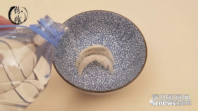 浸泡1~2小時左右的時候,燕窩變軟了。將燕窩撕成條狀繼續浸泡(這樣有助于燕窩更好的泡發)。