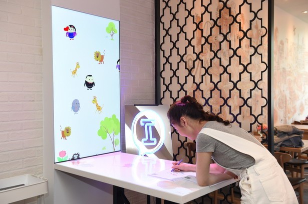 餐廳中心區域設置了一款風靡全球的“奇妙涂鴉”互動游戲,只需用蠟筆或微信小程序涂鴉,就能親眼見證自己填色的靜態畫像活靈活現地走入桌面走上墻壁,人人均可當一回“神筆馬良”,用創意打開無限想象,邊吃邊玩,將用餐變成一種愉悅的享受。