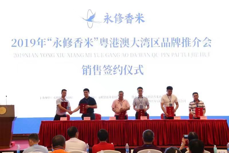 8 月 20 日上午,一場特別的盛會在深圳登喜路國際大酒店舉行:來自江西永修的領導和企業代表團帶著當地的“寶貝”—— “ 永修香米 ” 來到深圳進行推介,同時宣布 “永修香米”官網正式 上線。