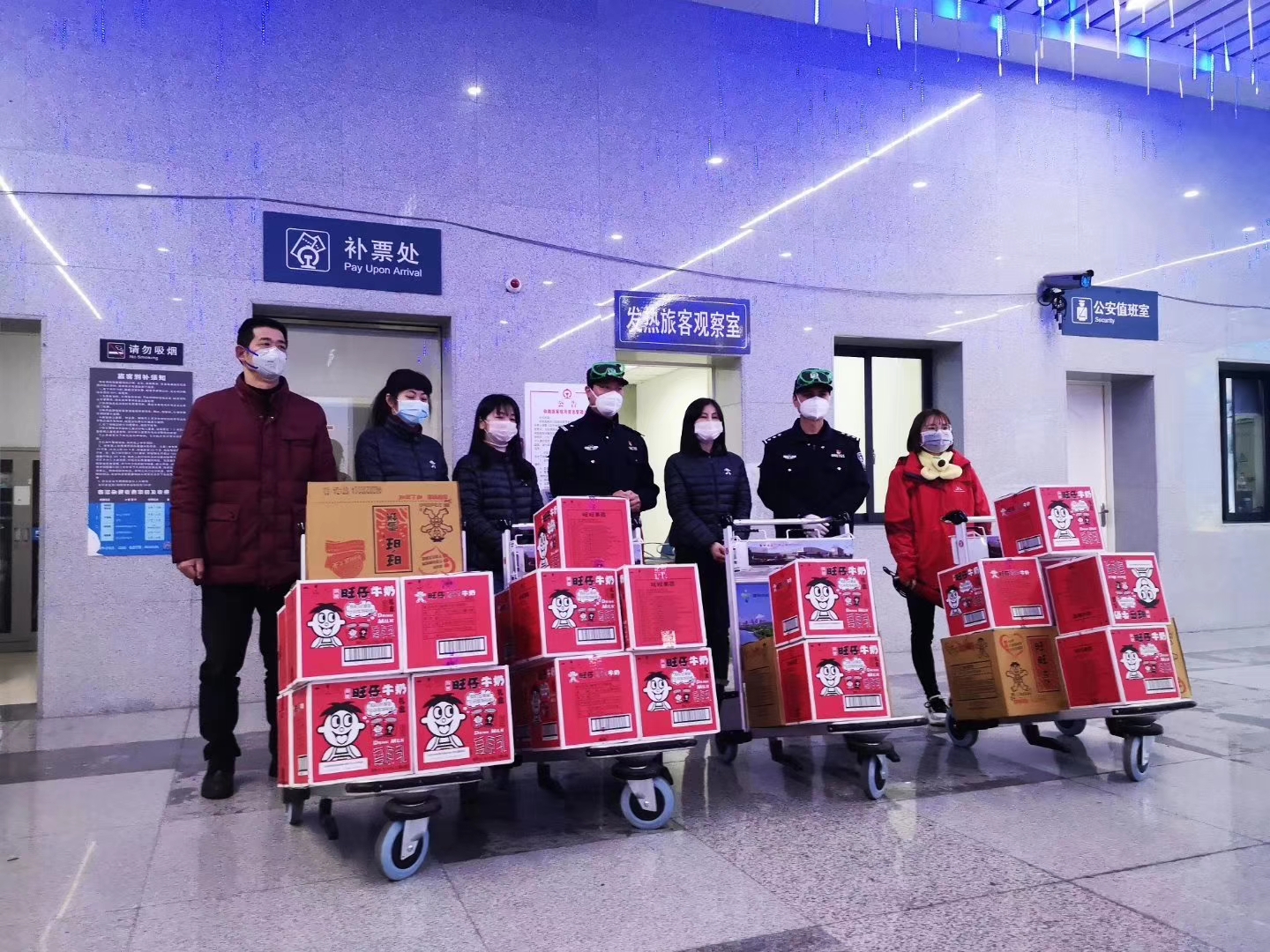旺旺浙江衢州總廠近日接到衢州廣播電視臺邀請共同推動援助抗疫活動。衢州總廠員工隨即全副防護武裝、戴好口罩,開倉將數百箱旺旺大禮包、米果、煎餅、旺仔牛奶,專車送達衢州火車站,以及高速公路、國道、省道管制點等衢州檢疫防疫站,感謝在第一線餐風露宿從事醫護和協助防疫的交警們的辛勞。(常軍平)