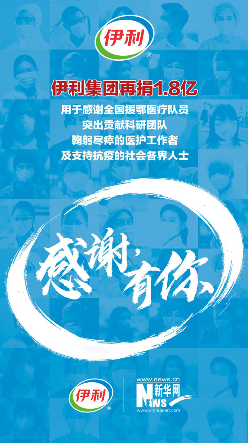 伊利再捐1.8億 營養支持一線抗疫英雄