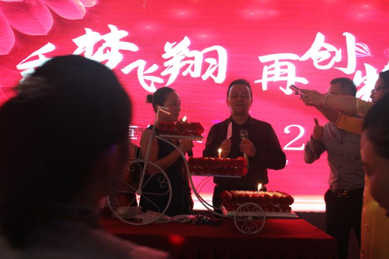 晚宴環節,精彩節目不斷,T臺秀、舞蹈表演、歌曲演唱、小品表演、自由唱跳環節等,由此,慶典進入晚宴和抽獎環節。開場酒過后,全體同仁一邊就餐一邊欣賞表演節目,熱鬧喜慶。當工作人員推出應典蛋糕時,譚總、周總一同上臺切蛋糕與全體嘉賓一起分享,慶典瞬間進入了高潮,大家見證了藏蟲草健康平臺兩周年的輝煌,是對平臺的肯定,也有對未來的美好期昐!