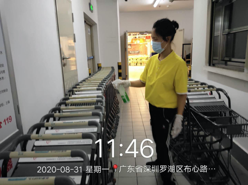 8月31日,深圳盒馬水貝店,工作人員對購物環境進行消殺。