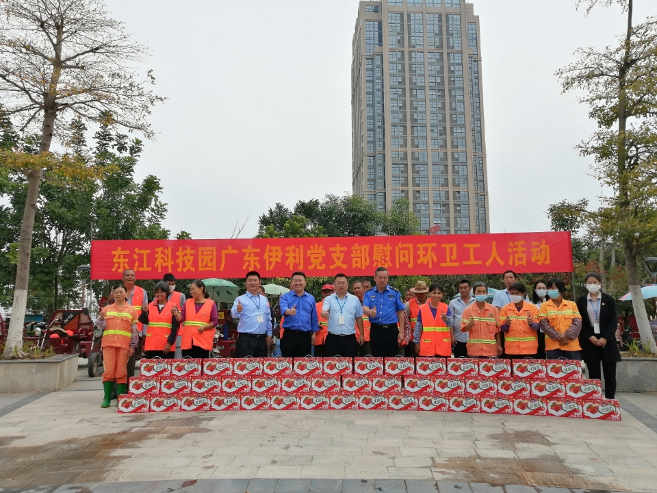 初心不渝,持續踐行社會責任。廣東伊利黨支部始終秉承“吃水不忘挖井人”的精神指導,高度踐行企業的社會擔當。在園區綜合黨委的關懷下,組織開展“熱心公益行”活動,為園區辛勤工作的環衛工人送去“營養標配”,捐贈牛奶45箱。“為他們送去健康,踐行企業社會責任,這是我們伊利應該做的”支部書記李江飛說到。
