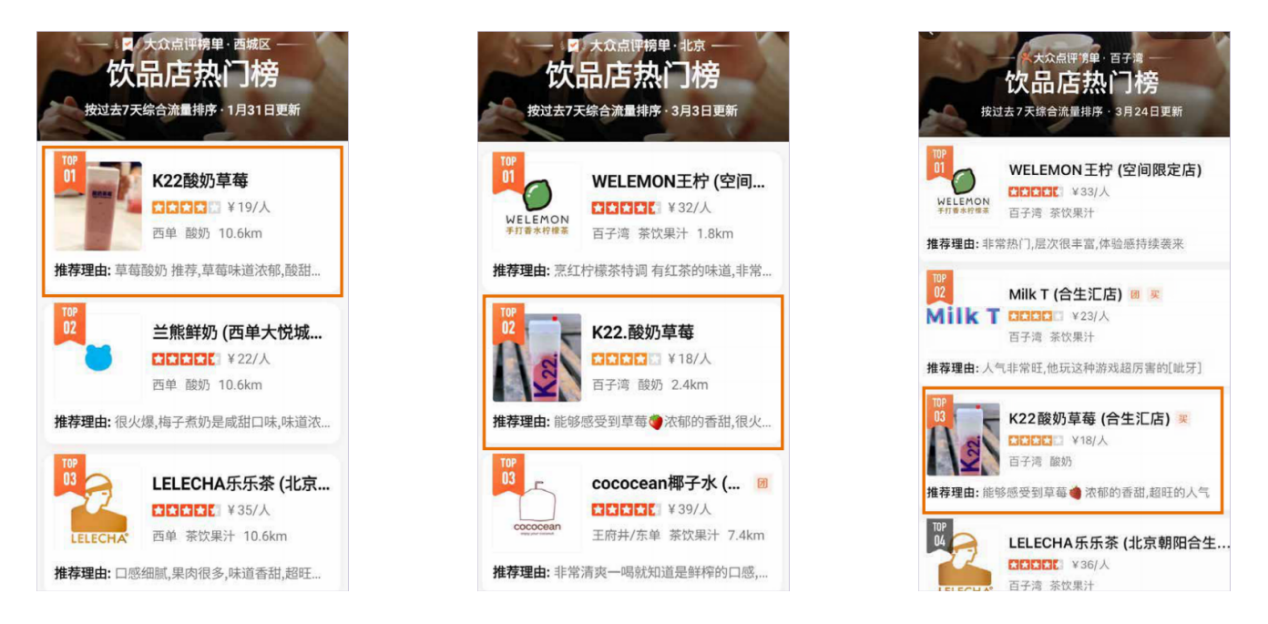 自帶流量的K22.酸奶草莓很快把店開進了北京一線商圈——西單大悅城,并在當時火速登頂大眾點評西城區熱門榜 TOP1,成為當之無愧的北京排隊王。