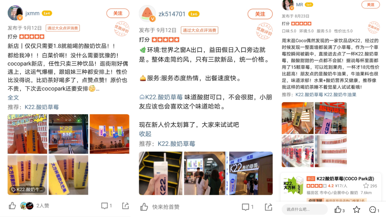 目前K22.酸奶草莓深圳門店已正式開業,試營業期間已榮登大眾點評飲品熱門榜單并收獲了相當不錯的人氣和好評,相信K22.酸奶草莓在深圳的市場發展一定能再創輝煌。